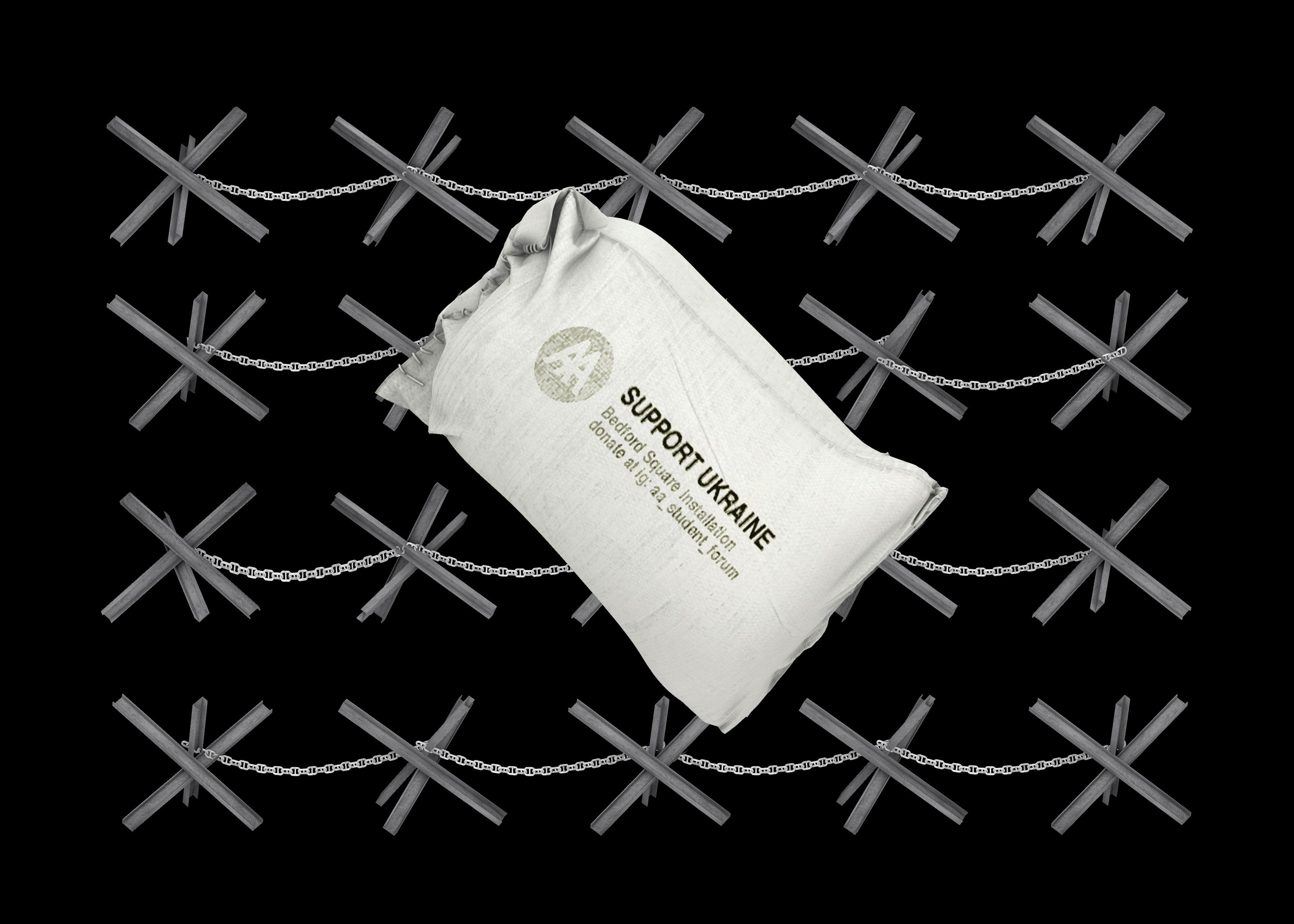 We, the students of the AA, believe this should never happen. Further awareness and visibility of the war must be fostered. To do so we are transforming the corner of Bedford Square, installing 12 tank traps and 130 sandbags, just as they have been across Ukraine. Those used from WW2 have even been removed from museums and reinstated. Tank traps are not weapons. Instead, they are a means of defence. Their insertion into Central London will serve as a reminder of violence that still occurs, operating as a focal point, a space to generate conversation and awareness; to defend against normalisation.