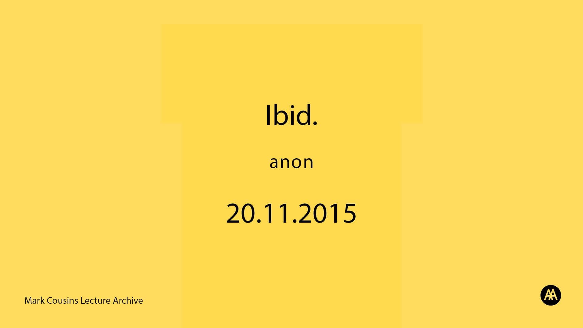 Admin History: The recording is of the 2nd lecture in the series entitled 'Anon', given by Mark Cousins as part of the AA Open Lecture series, 2015-2016. In this lecture, Mark Cousins investigates the question of 'the anonymous' in terms of identity. He examines the ambivalent status of anonymity and asks: what is the location of the anon? Can you turn anonymity into a name?