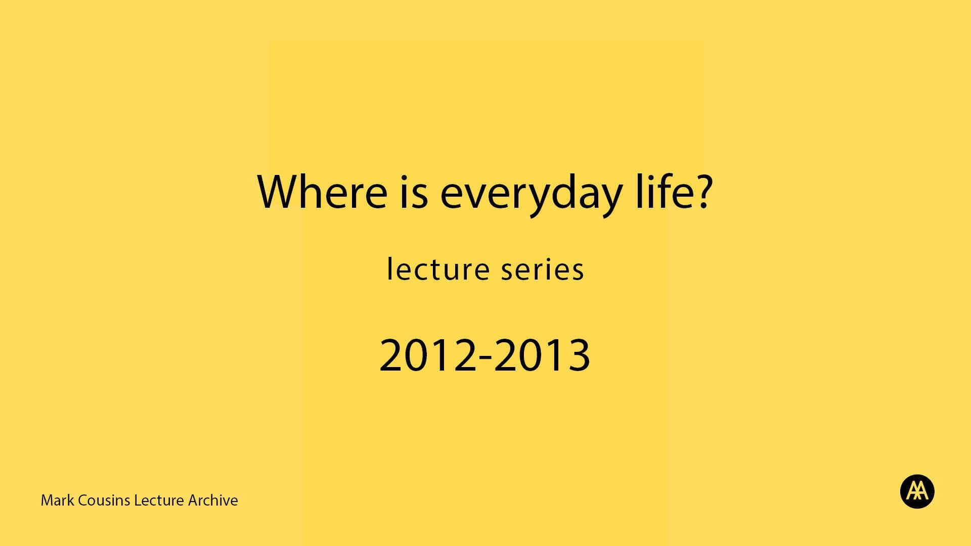 Admin History: The recording is of the 3rd lecture in the series entitled 'Where is Everyday Life?', given by Mark Cousins as part of the AA Open Lecture series, 2012-2013. In this lecture, Mark Cousins explores 'everyday life' in the night. He starts by building a definition around the quotidian or the mundane, suggesting that the category serves to replaces the figure of the crowd. It is something always understood by 'the crowd' as a reaction, never an object. Finally, he proposes that we should therefore consider the idea of 'the everyday' as a zone in which an object can meet desire, similar to the state of dreaming, yet unlike it because it is conscious and awake.